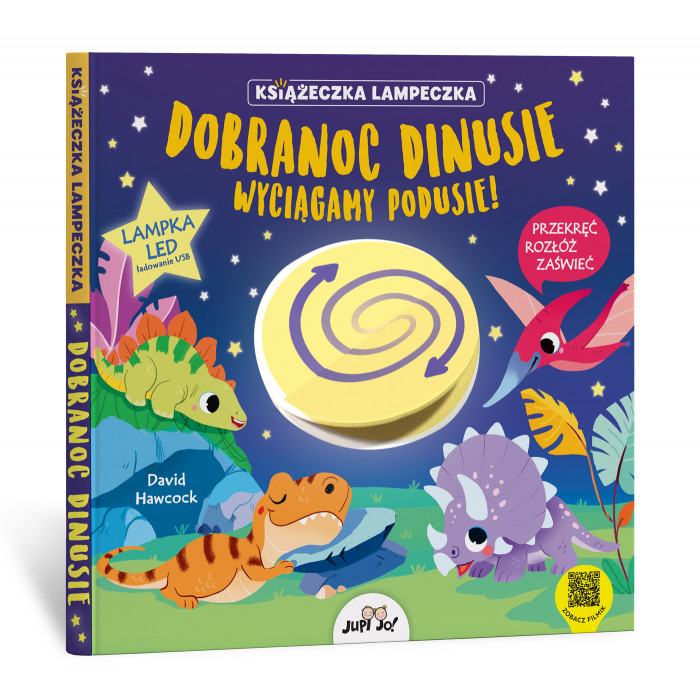 Książka lampka to innowacyjny projekt opracowany przez Davida Hawcocka, mistrza inżynierii papierniczej. Wystarczy przekręcić i pociągnąć okrągły element na okładce, a sypialnia maluszka natychmiast się rozświetli! W książce znajduje się osiem słodkich rymowanek o dinozaurach, które pomogą dzieciom przygotować się do snu, a delikatne światło lampki będzie towarzyszyło im podczas zasypiania. Fluorescencyjne detale na okładce pozwolą zobaczyć książkę nawet w ciemności!